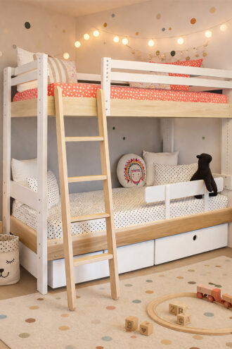 Το παιδικό κρεβάτι ΖΟΟ, διαθέτει στέγη από ύφασμα της επιλογής σας και είναι διακοσμημένο με υπέροχες φιγούρες ζώων (του δάσους ή της ζούγκλας) που αφαιρούνται εύκολα. Μπορείτε να το επιλέξετε σε μορφή καναπέ (χωρίς τη στέγη) ενώ ένα extra συρόμενο κρεβάτι με μηχανισμό ανύψωσης. Είναι η τέλεια λύση για να καλύψετε τις ανάγκες φιλοξενίας δεύτερου παιδιού στο ίδιο δωμάτιο ή για χρήση αποθηκευτικού χώρου.